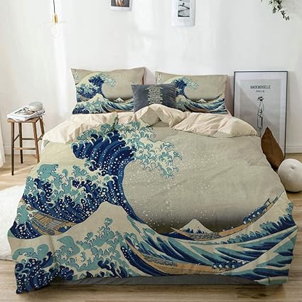 JOSENI Parure de lit,Beige,La Grande Vague Peinture Japonaise Hokusai sous Une Vague au Large de Kanagawa,1 Housse de Couette 200x200 + 2 Taies d'Oreillers: Amazon.fr: Cuisine & Maison